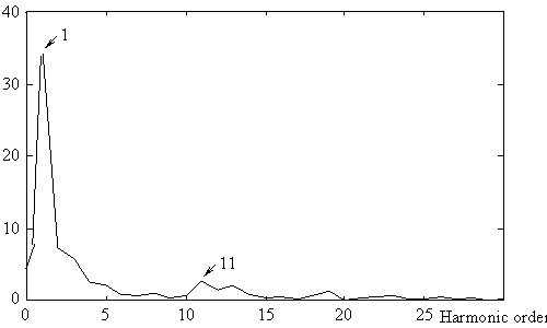 Fig. 11. Currents and harmonic spectrum (a) leading mode